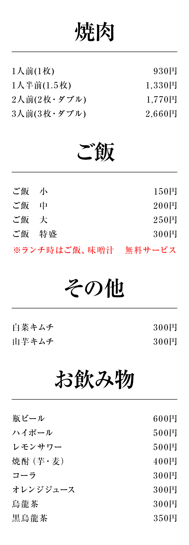“「旨い!」お客様からその一言を聞くために、野菜や肉の切り方、焼き方、味付け…細部に至るまでの「こだわり」が現在の味を完成させたのだと思います。 ご飯のお供に、お酒のあてに、どんなシーンにでも合う、とにかく旨いものをご提供することが私たちの使命でもあります。 世代を超えて受け継がれるこの味を、是非ご賞味ください。